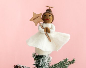 White Fabric Fairy Angel Christmas Tree Topper - 23 cm. Shop our range of luxury Christmas tree toppers to add the perfect finishing touch to your Christmas tree. Glittering Gold Tree Top Star - 23 cm.